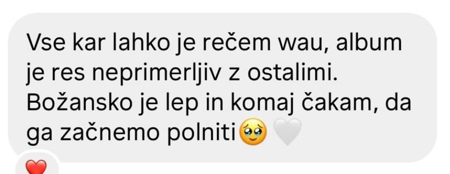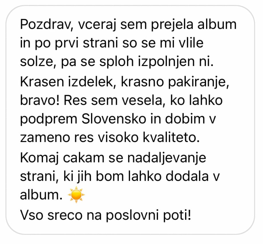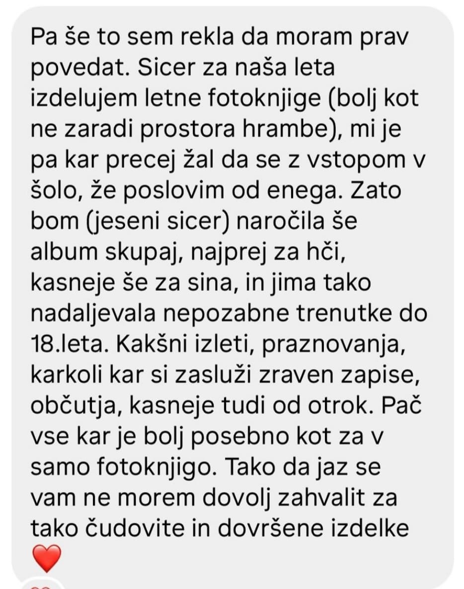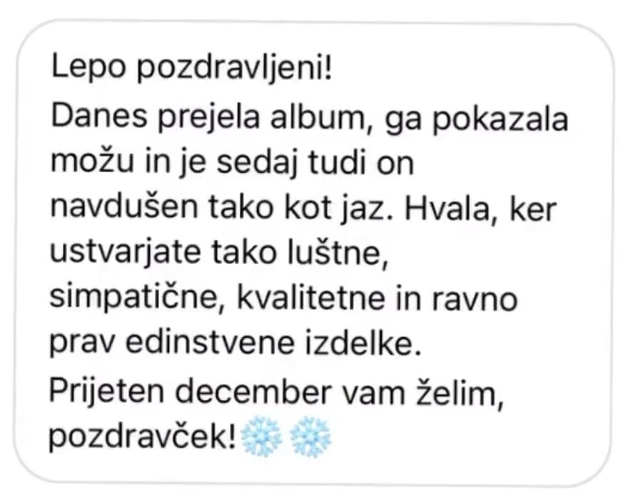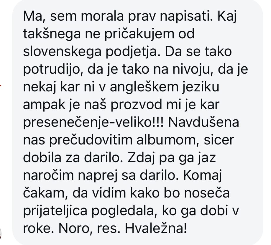 Ni besed, da prehvalim album. Včeraj smo prišli iz porodnišnice in nas je doma pričakal album, ki mi ga je naročila sestra…. wau … Zunanjost, material tak, da ga skoraj ne upam prijet. Vsebina notri pa tako lepo popelje do dojenčka s spoznavanjem para… Odlično! To da sem jokala zraven, ko sem samo pogledala, kaj bom šele, ko bom izpolnjevala pa verjetno ne rabim povedati.